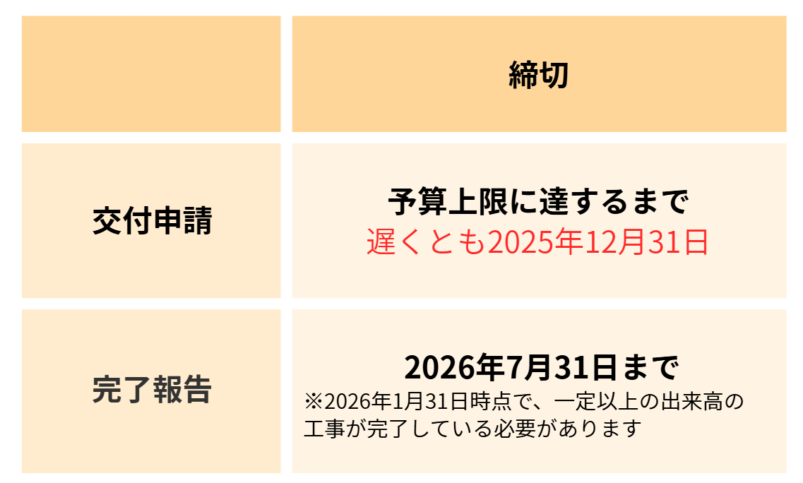 すでにGX志向型住宅の枠が埋まっていることからも分かるように、予算上限に達し次第締め切りとなるため、注意しましょう。