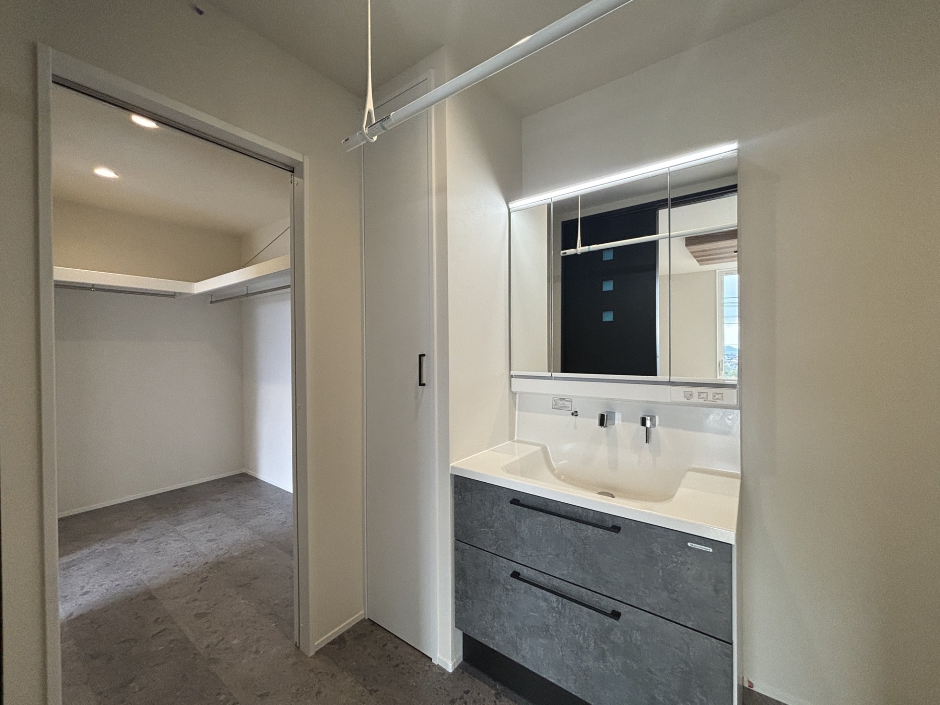 水回りの横がファミリークローゼットなので、乾いた洗濯物をしまうところまで一カ所で完結します。