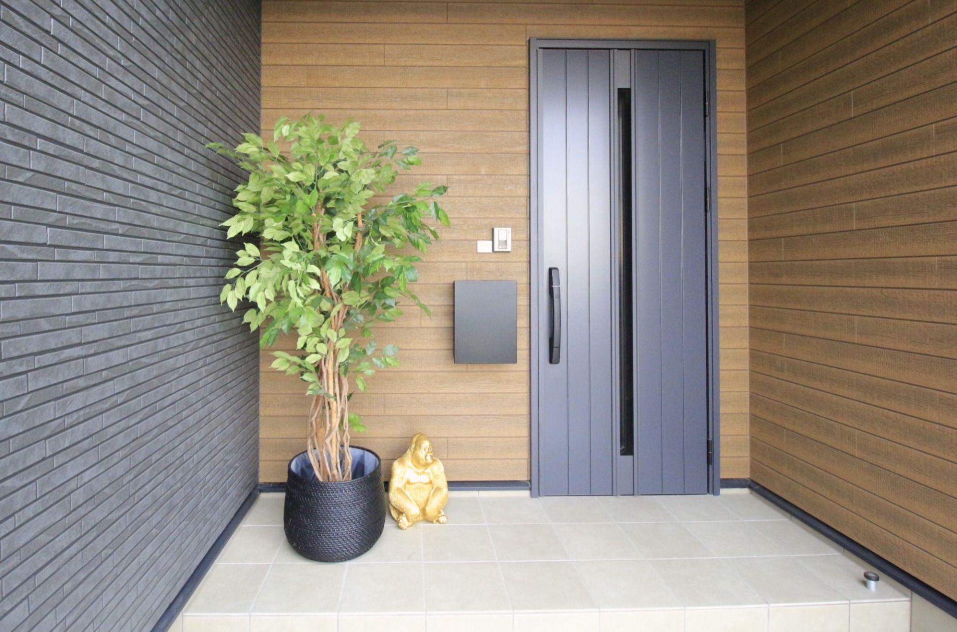 お宅を訪問した際は、鉢植えとお茶目なオブジェが飾られていました。