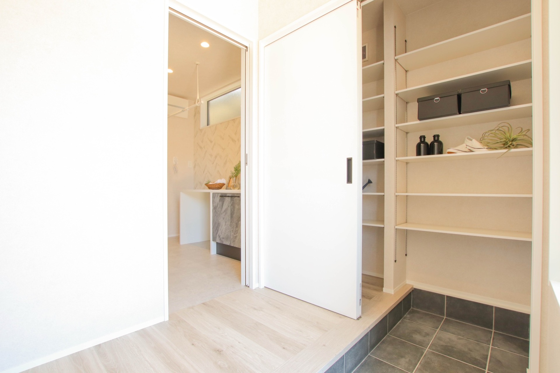 玄関を入ってすぐ洗面スペースがあるので、帰宅後の手洗いやうがいもスムーズです。