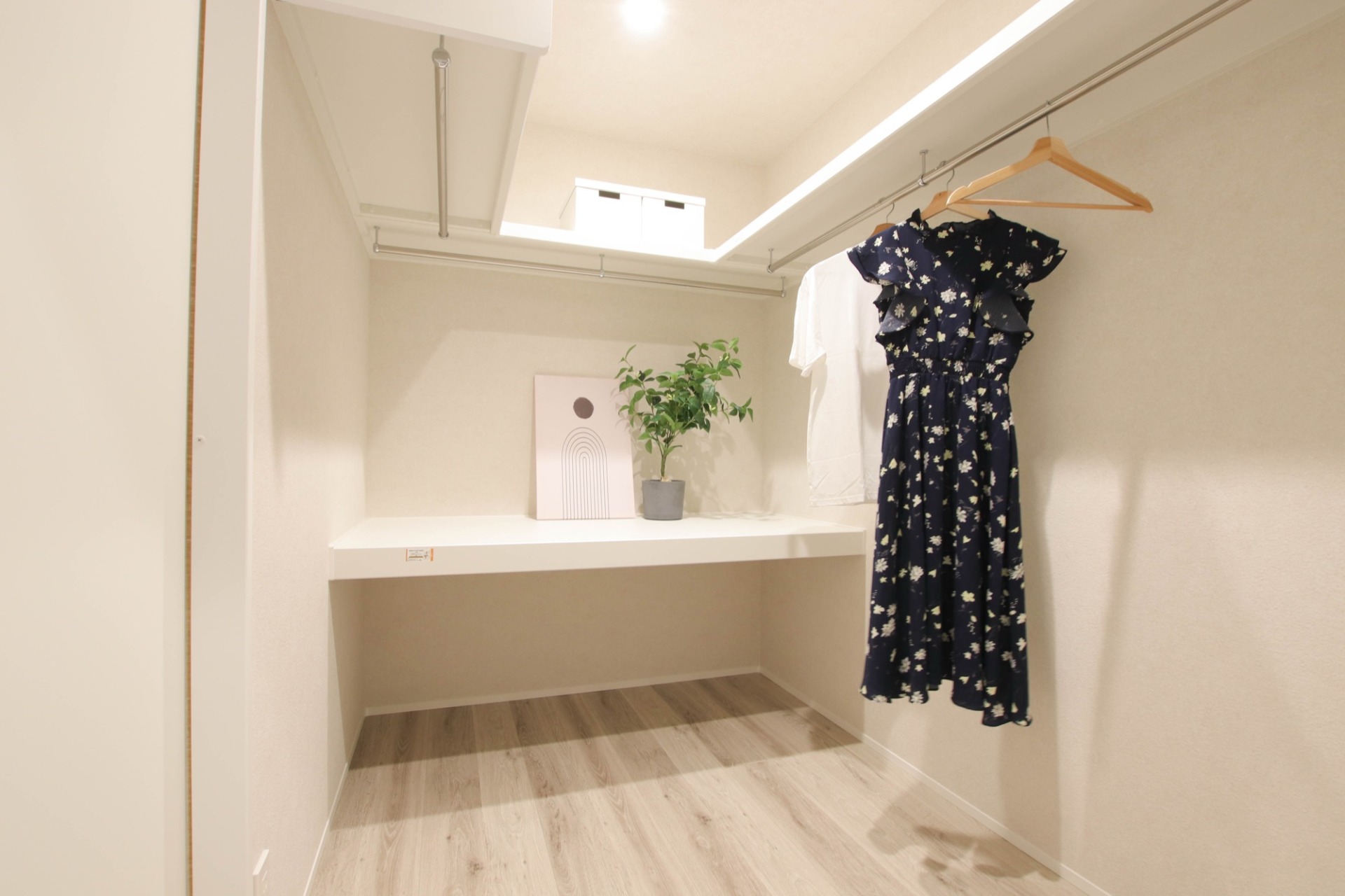 乾いた衣服はすぐそばのファミリークロークへ。洗濯物をしまうところまでワンフロアで完結します。